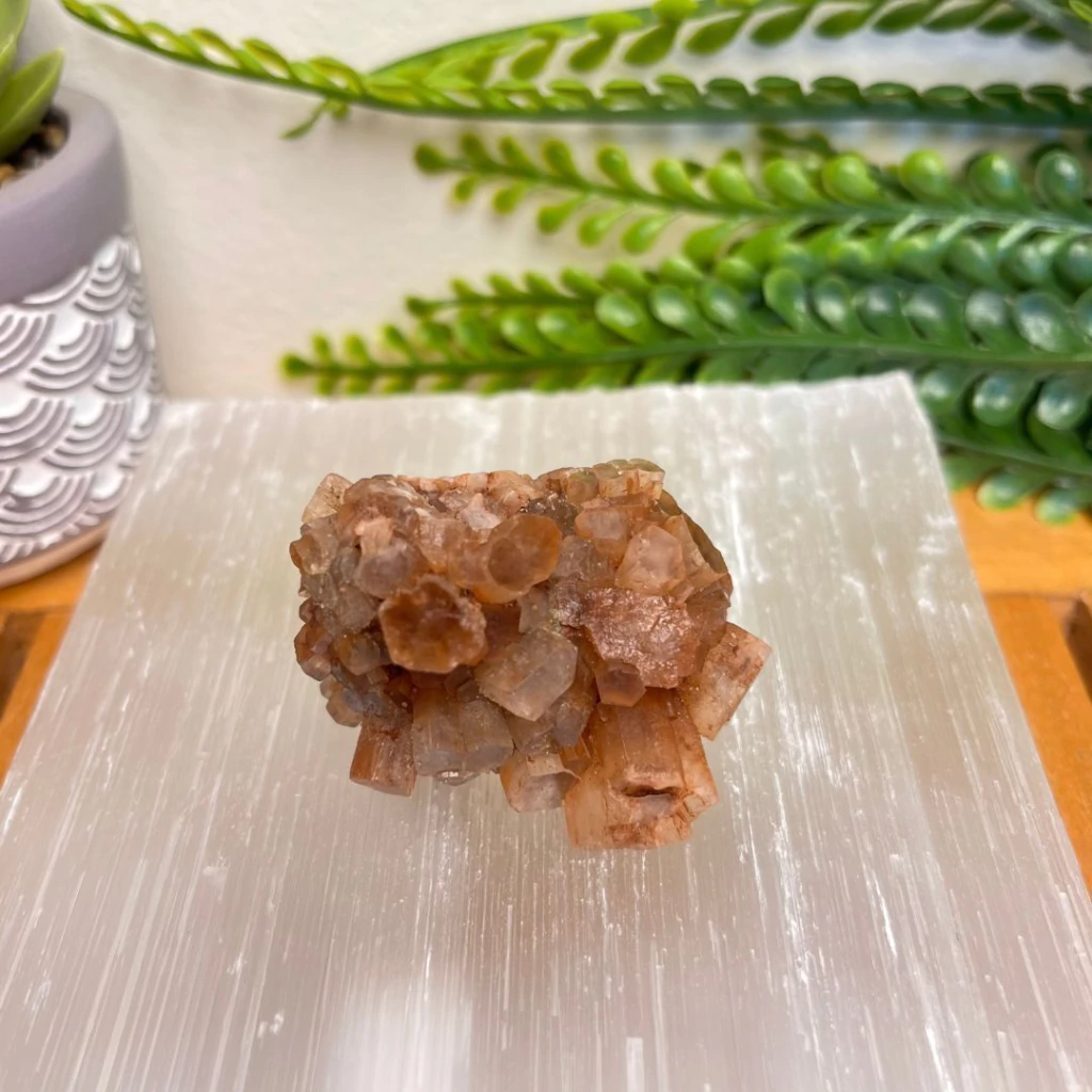 No campo emocional, ela ajuda a acalmar a mente agitada, aliviar tensões e trazer clareza diante de desafios, sendo ideal para quem precisa desacelerar e encontrar serenidade. Espiritualmente, a Aragonita fortalece a conexão com a Terra e com o próprio propósito, auxiliando em práticas de meditação, cura e alinhamento energético.