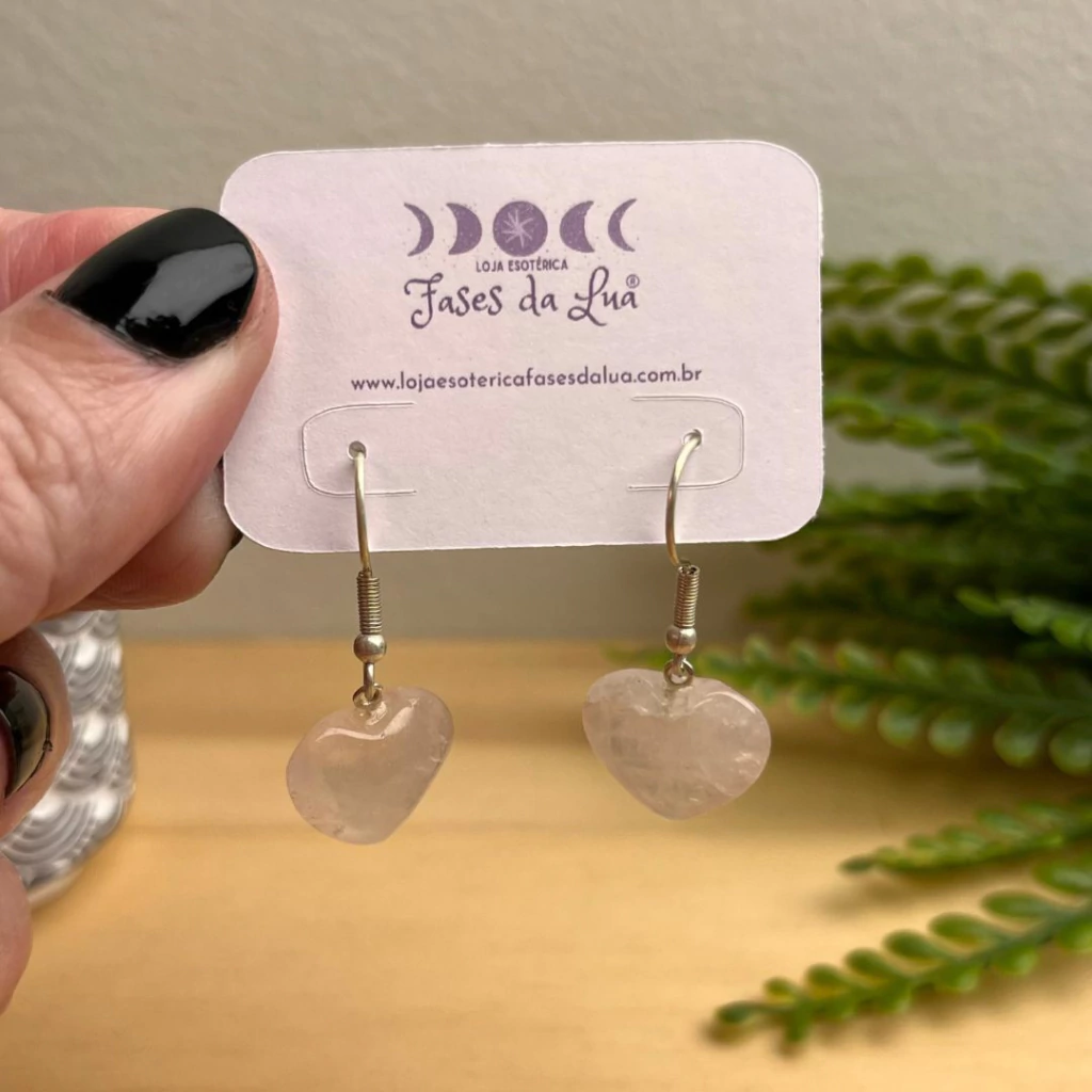 O amor próprio nunca sai de moda — e agora pode vir em forma de brinco. Esse Quartzo Rosa em formato de coração é um abraço energético que você usa nas orelhas.