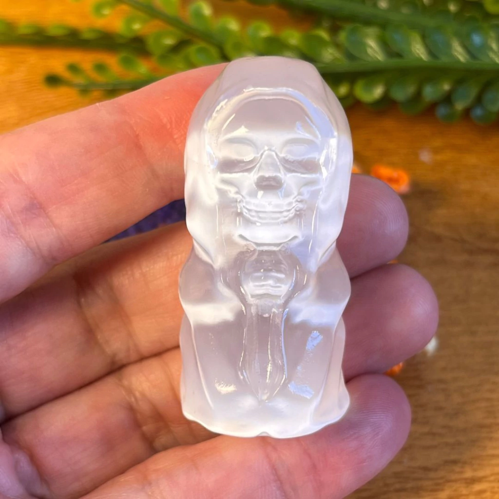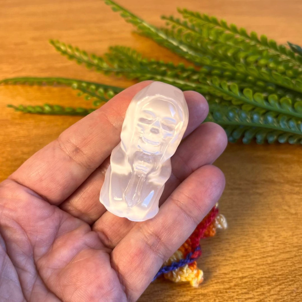 A Caveira de Selenita é uma peça poderosa para quem busca limpeza energética constante, proteção espiritual e clareza mental. A selenita já é conhecida por purificar ambientes, dissolver tensões emocionais e elevar a vibração, no formato de caveira, sua força simbólica se intensifica. As caveiras representam sabedoria ancestral, transformação e a capacidade de enxergar além das ilusões, ajudando você a enfrentar ciclos de mudança com mais coragem e presença.