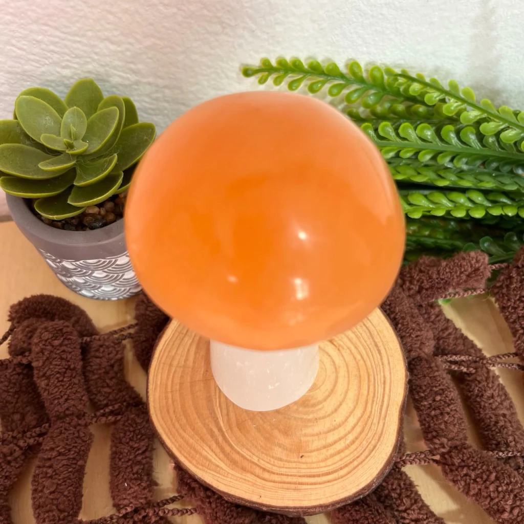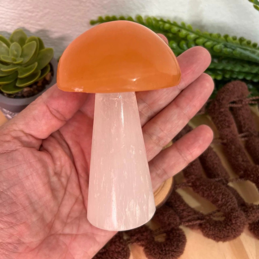 Além de intensificar a conexão espiritual e abrir caminhos para uma compreensão mais profunda das emoções, essa combinação também auxilia na liberação de bloqueios energéticos, promovendo leveza e bem-estar. A Selenita Branca eleva a frequência vibracional, enquanto a Selenita Laranja remove estagnações e fortalece a vitalidade, tornando esse Cogumelo um aliado ideal de clareza, proteção e renovação em todos os aspectos da vida.