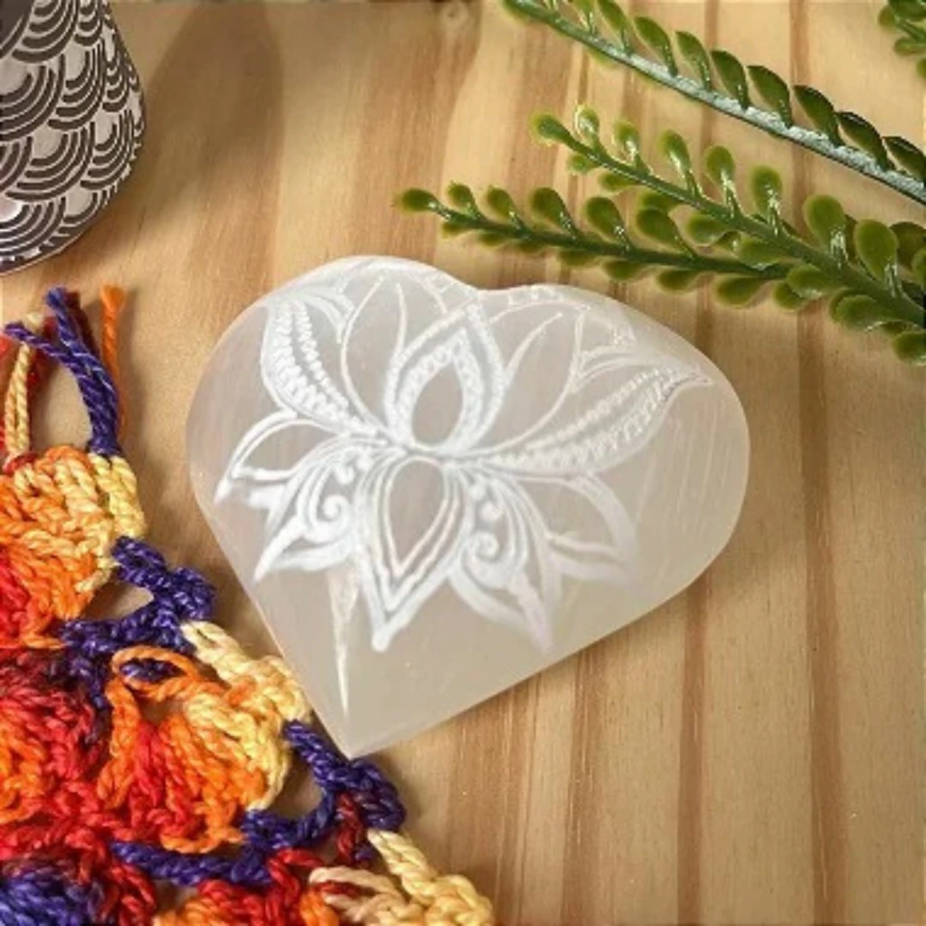 O Coração de Selenita é uma peça de decoração e também uma ferramenta de limpeza e purificação de energia. Pode ser usado para práticas espirituais e de cura.