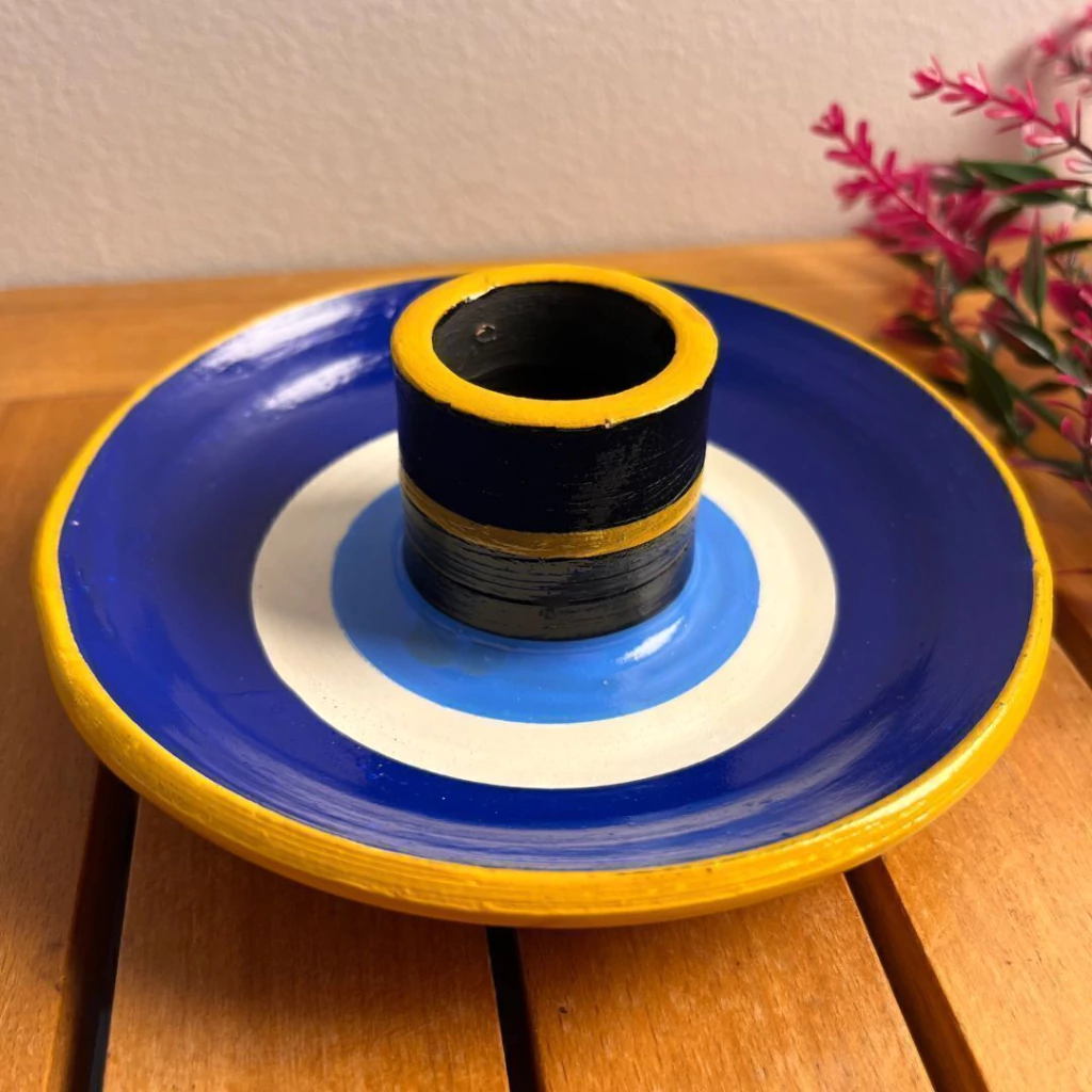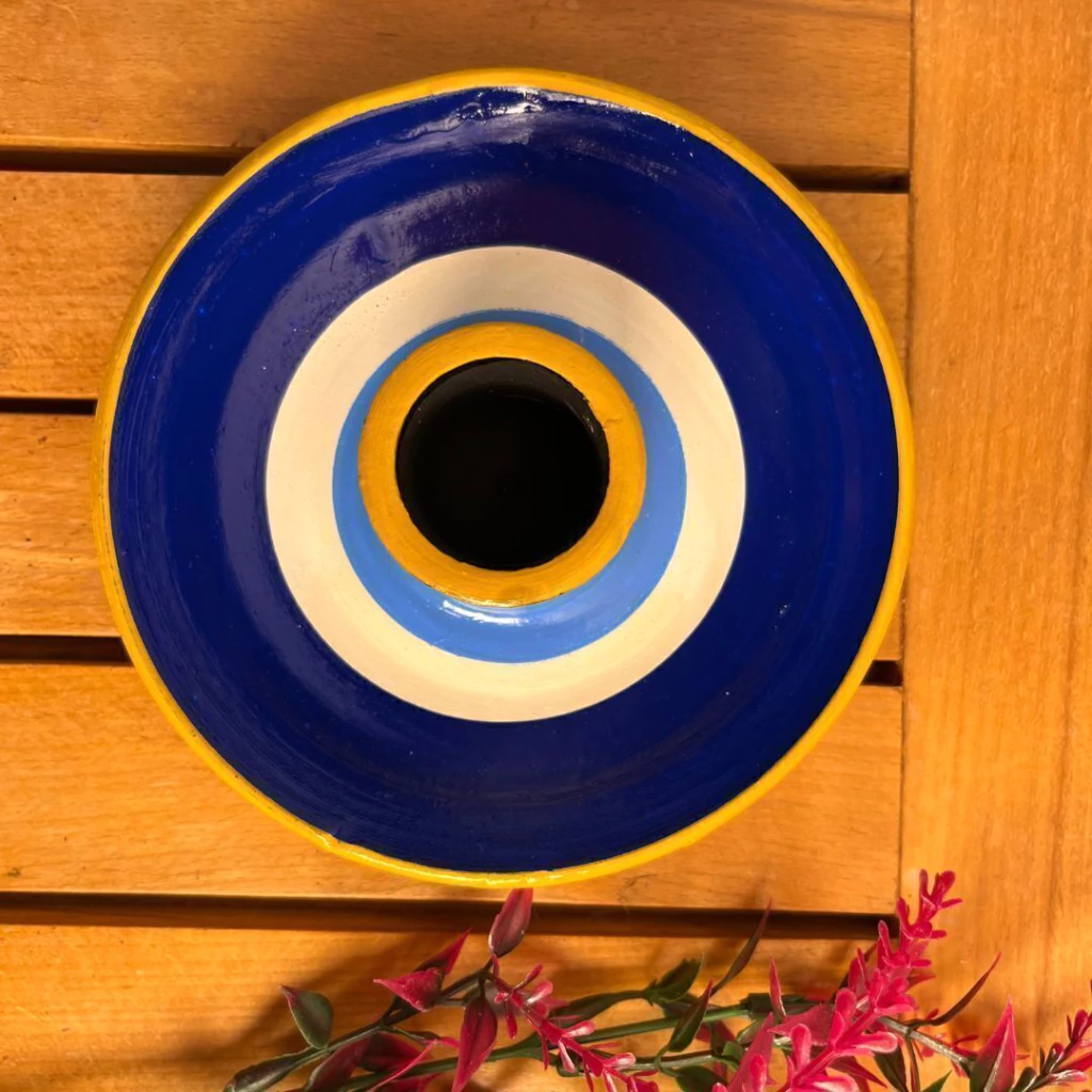 Produzido em cerâmica resistente, além de funcional é também um objeto decorativo que carrega a energia vibrante do olho grego que afasta inveja, mau-olhado e energias negativas