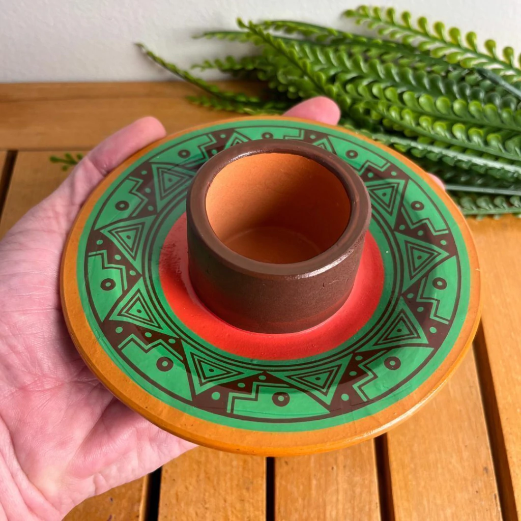 O Incensário Defumador Peruano de Cerâmica é uma peça versátil e artesanal, ideal para acompanhar seus rituais de defumação. Ele pode ser usado com bastão de ervas, bombinhas defumadoras, defumadores em pirâmide e com palo santo, trazendo praticidade e beleza para seu altar ou cantinho especial.