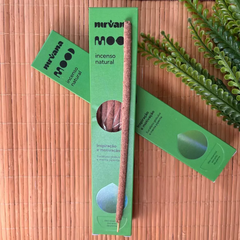 Fabricação: blend terapêutico Nirvana, vareta de bambu, pó de madeira, aglutinante, óleo essencial de eucalipto globlulus e óleo essencial de menta piperita.