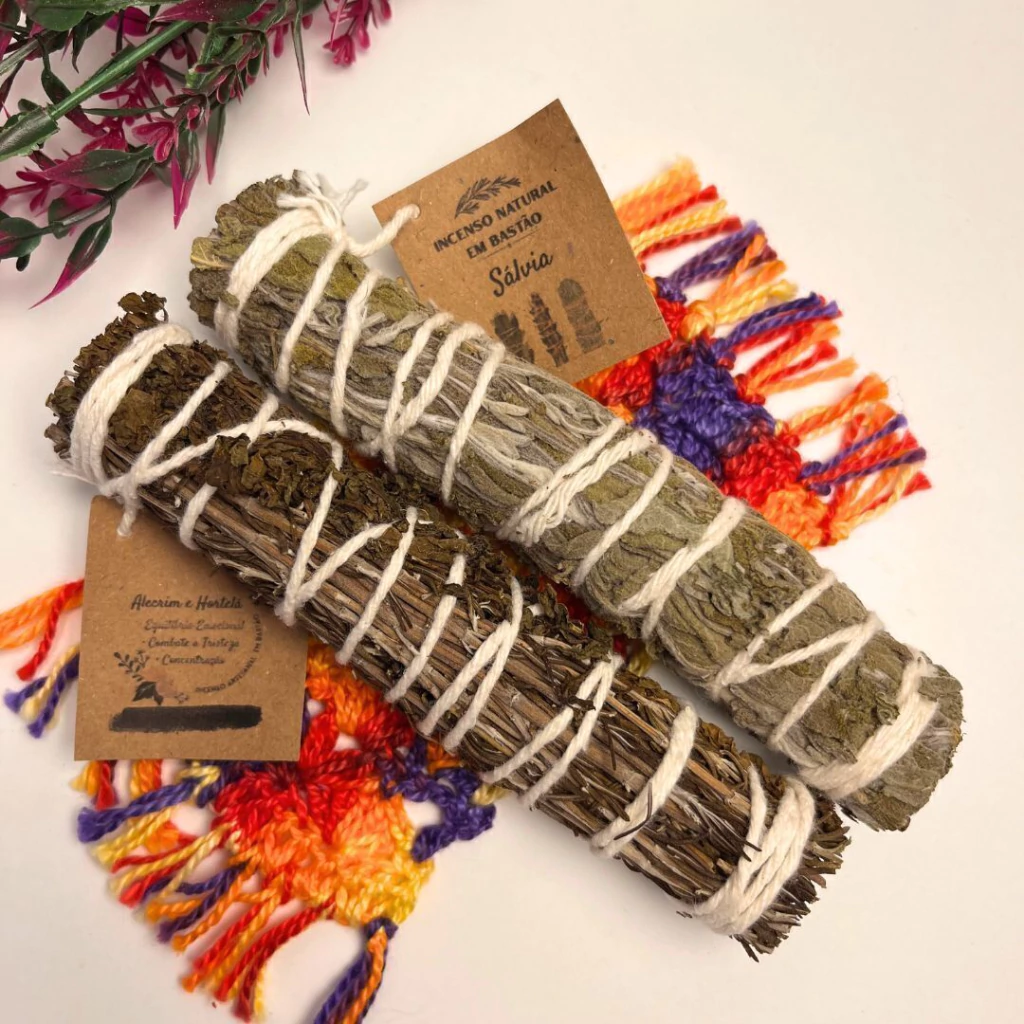 1 Bastão de erva natural de Sálvia Branca + 1 Bastão de erva natural de Alecrim com Hortelã