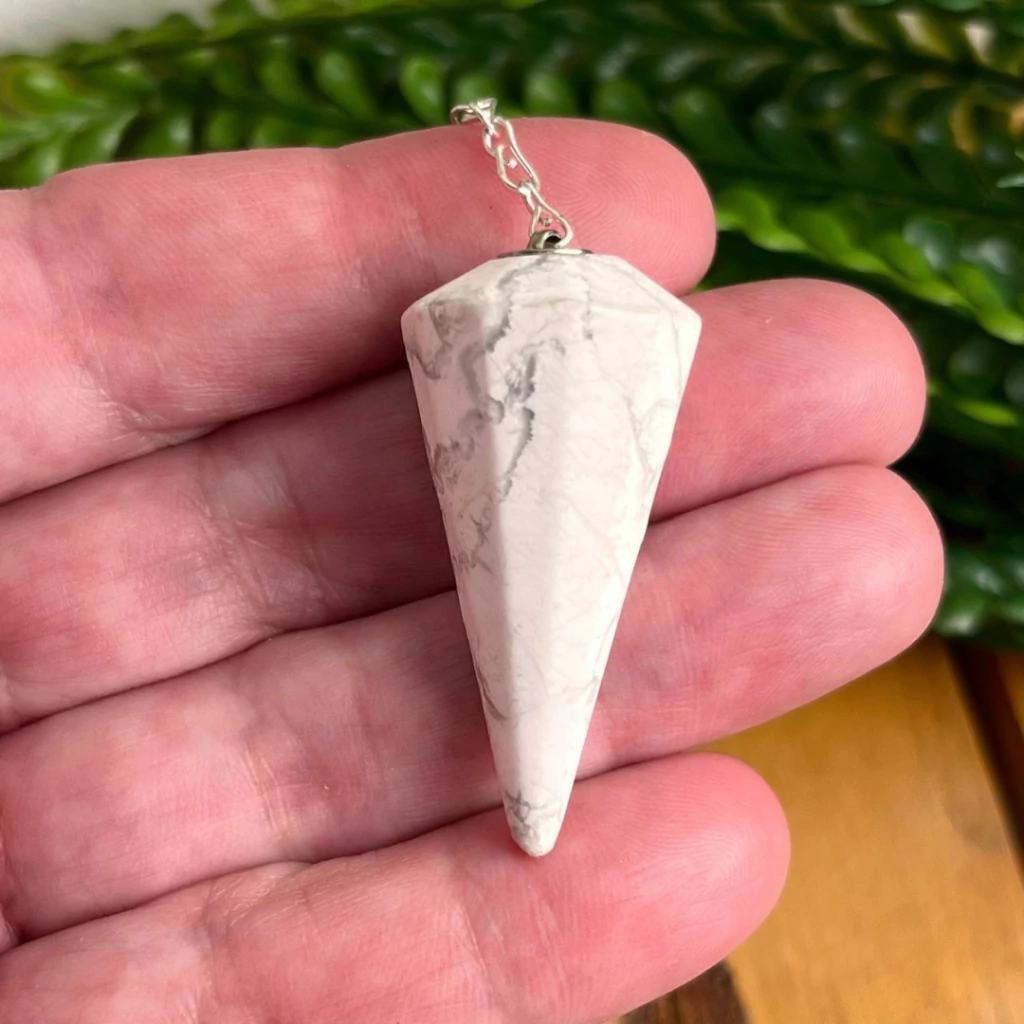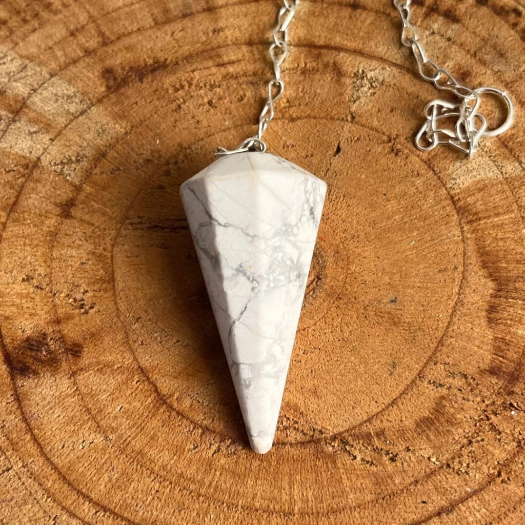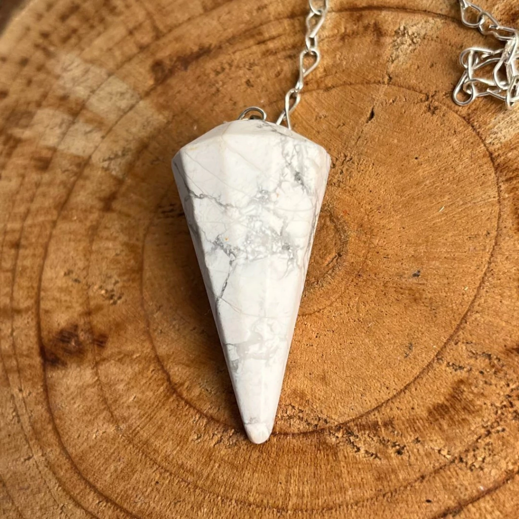Se você precisa de um pêndulo que te ajude a manter o equilíbrio emocional enquanto toma decisões importantes, a Howlita é a escolha certa: acolhe, acalma e orienta com doçura.
