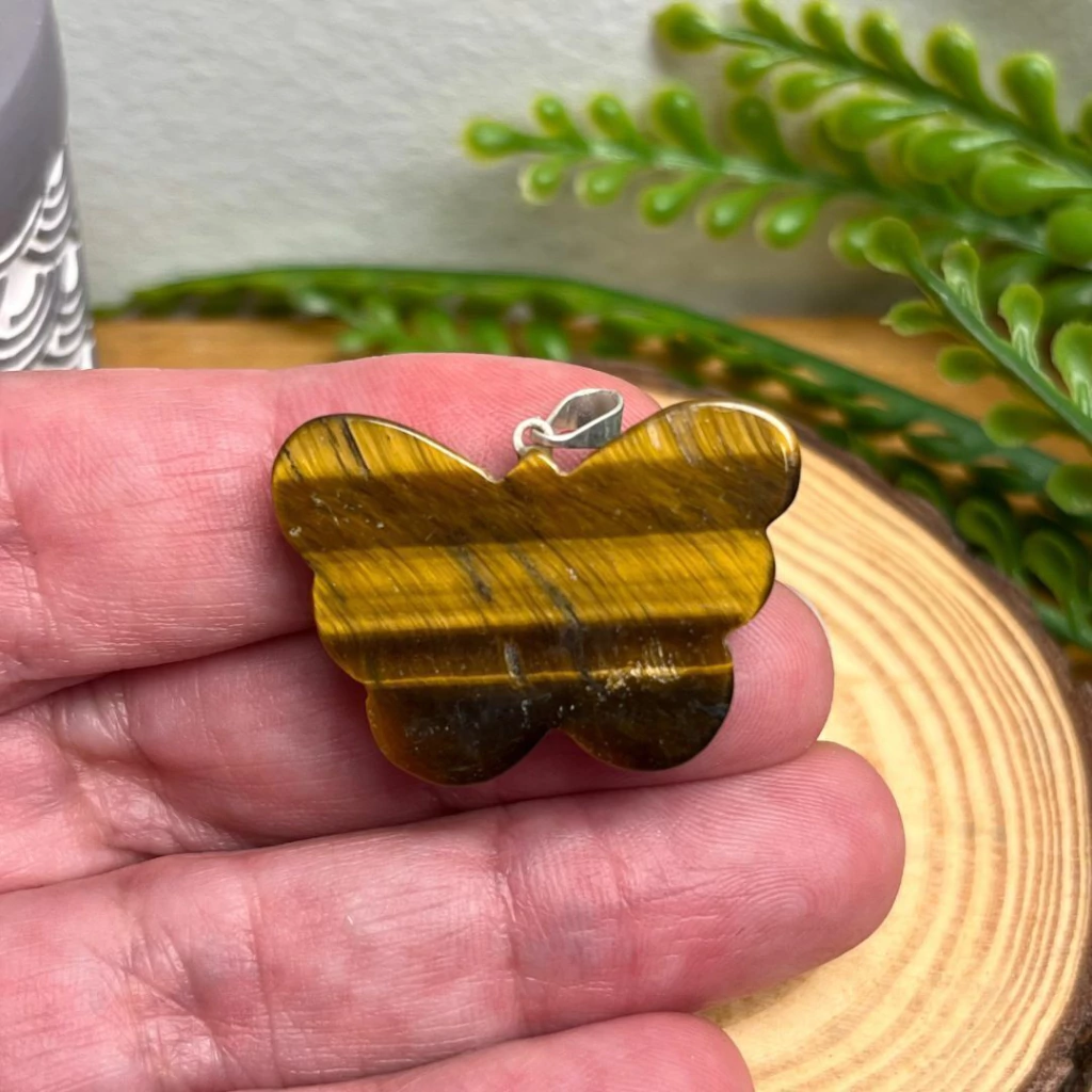 O olho de tigre auxilia a afastar medos, fortalecer a autoconfiança e proteger contra energias negativas, trazendo equilíbrio entre razão e emoção. Já a borboleta simboliza renovação e evolução, lembrando que toda transição pode ser um voo para algo maior.