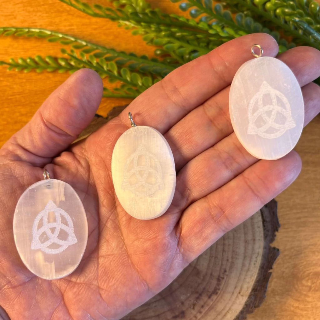 O Pingente de Selenita com Símbolo Nó Celta une a energia purificadora da selenita com a força ancestral desse símbolo que representa eternidade, proteção e conexão com o divino. A selenita atua limpando o campo energético, dissolvendo tensões, acalmando a mente e alinhando as emoções, enquanto o Nó Celta potencializa a sensação de segurança, continuidade e força interior no dia a dia.