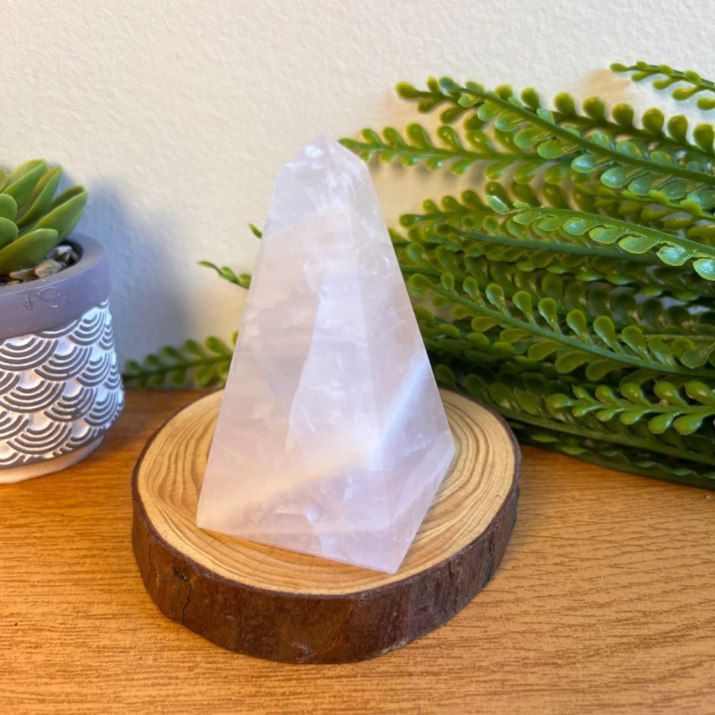 O formato em ponta com faces geométricas ajuda a canalizar a energia do quartzo, elevando o campo vibratório do ambiente, atraindo harmonia e distribuindo vibrações de amor de forma mais intensa e direcionada.