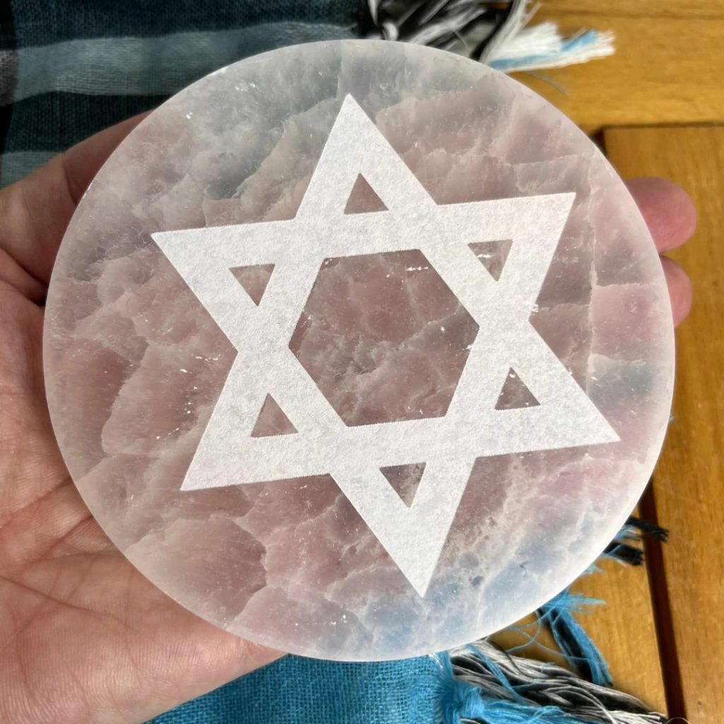 Algumas opções de uso para Placa de Selenita Estrela de 6 Pontas: