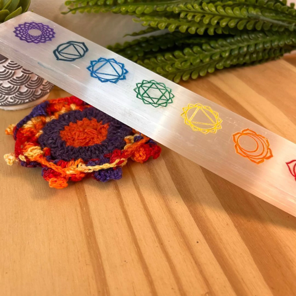 Algumas opções de uso para Régua de Selenita com Símbolo dos 7 Chakras: