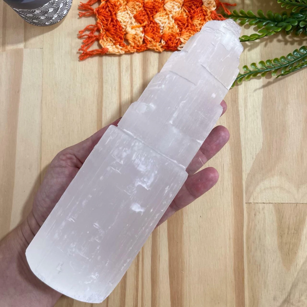 A Selenita Branca abre um canal de comunicação com a espiritualidade e também vai trazer proteção enquanto mantém o campo energético limpo e energizado.